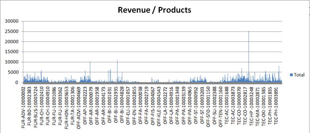It is very difficult to identify what are the products with more rotation and even more complex to know the revenue, locations, and season. With Machine Learning Grouping statistics, we can classify the products by quantity and location.  See Figure B, Revenue per Product Groups. With this analysis find the answers to complex questions like what is the location with more and fewer products delivered.